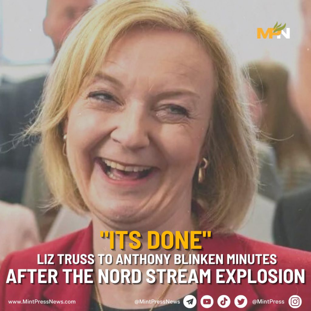 Former UK Prime Minister Liz Truss allegedly sent a message saying ‘It’s Done’ to the U.S Secretary of State Antony Blinken immediately after the Nord Stream attack. Kim Dotcom, a German-Finnish internet entrepreneur who resides in New Zealand, said the text message is the reason Russia claims the UK was involved in blowing up the pipeline. He has credited iCLOUD admin access for the disclosure. The Russian Foreign Ministry has asked the British government to officially comment on the explosive claims against Truss. Last week, several British media outlets reported that the personal phone of Liz Truss was allegedly hacked by Putin’s spies. Notably, Russia’s claims that the British Navy was involved in the Nord Stream “terror attack” came just after Liz Truss’s phone hacking allegations. This report has full information.